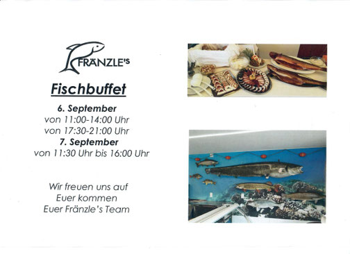 ... Fischplatte, Fischburger, „Knusperle“ und mehr – die Auswahl ist groß, die Entscheidung fällt uns aber nicht schwer: Wir bestellen „Knusperle“ – Lachsforelle aus privater Zucht und Felchen aus dem Bodensee im Teigmantel. ...